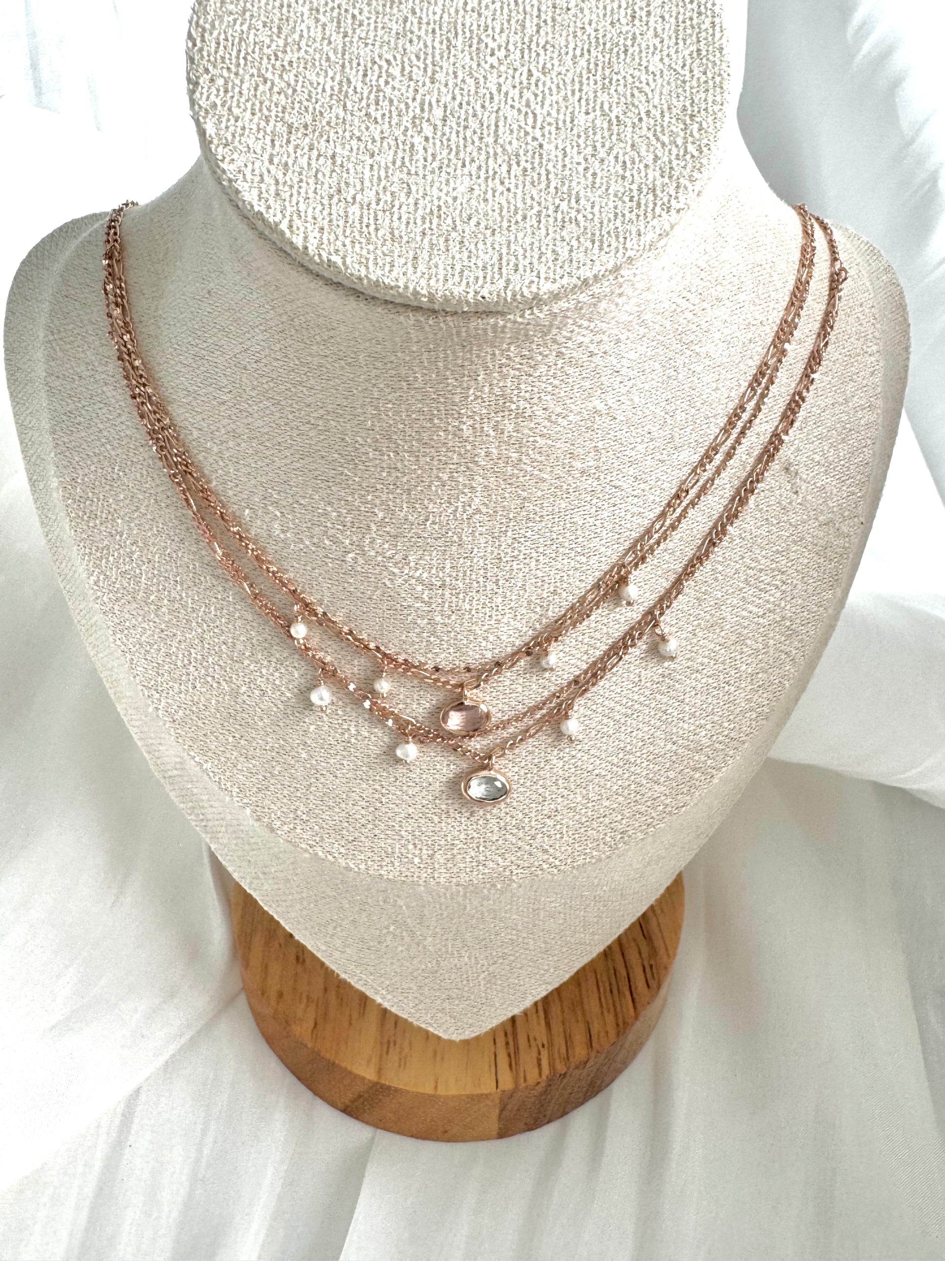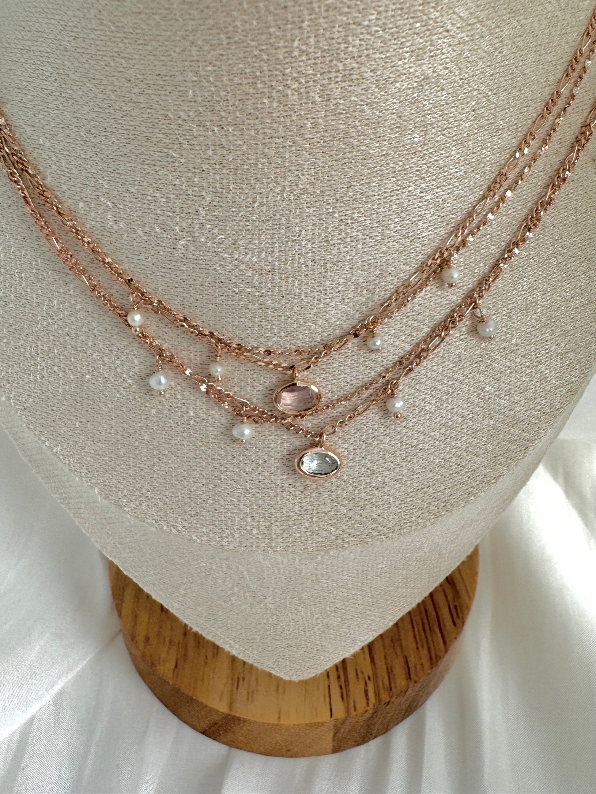 ⏣ Material: Sterling Sliver Rose Gold plated Necklace with Gemstone and Freshwater Pearl