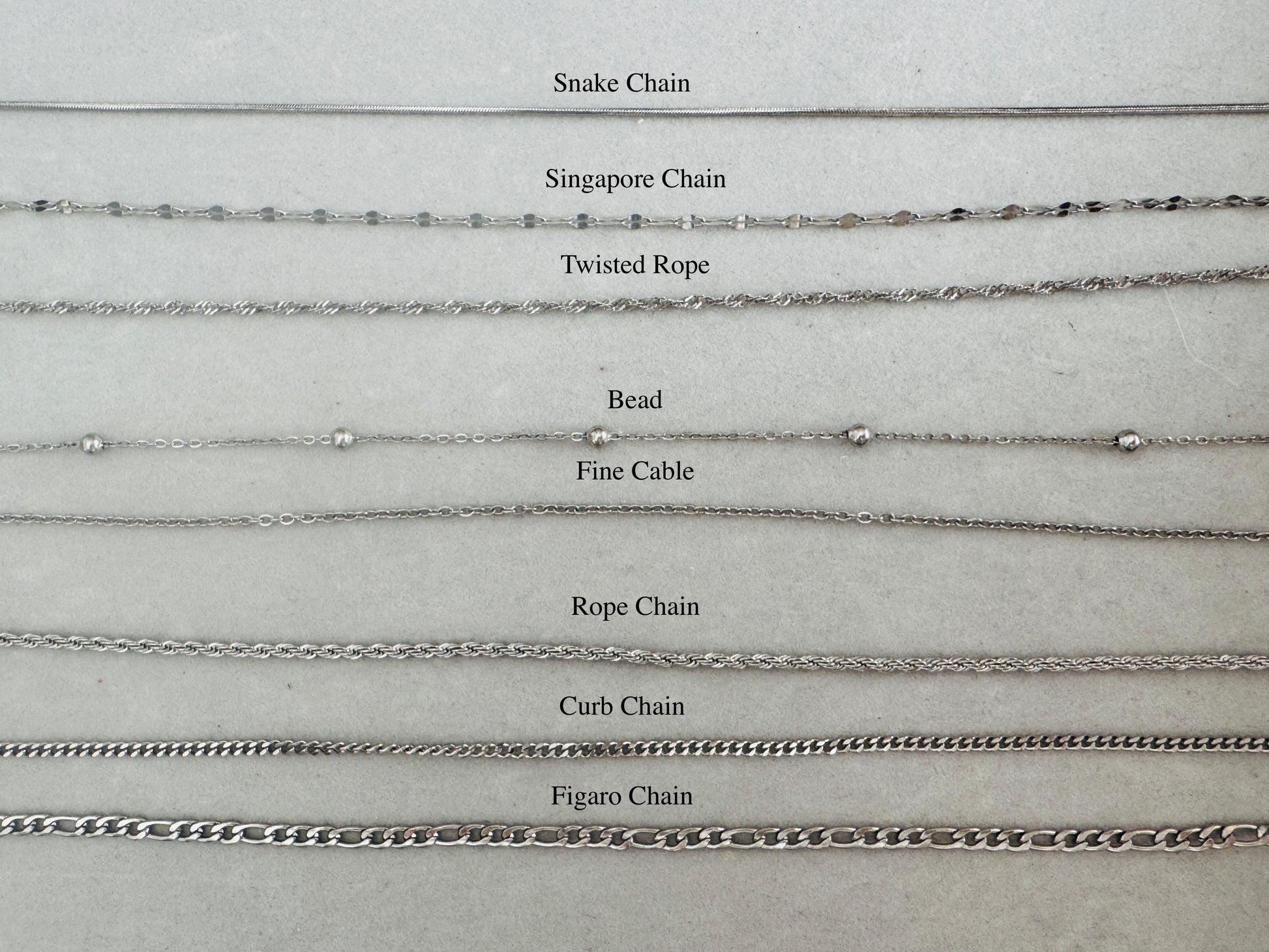 ⏣ Chain Design: 2.5mm Paperclip, Snake Chain,Singapore Chain,Twisted Rope,Bead, Fine Cable, Rope Chain, Curb Chain,Figaro Chain,